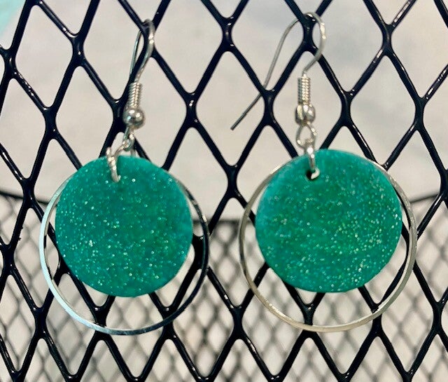 Green Earrings with silver hoops